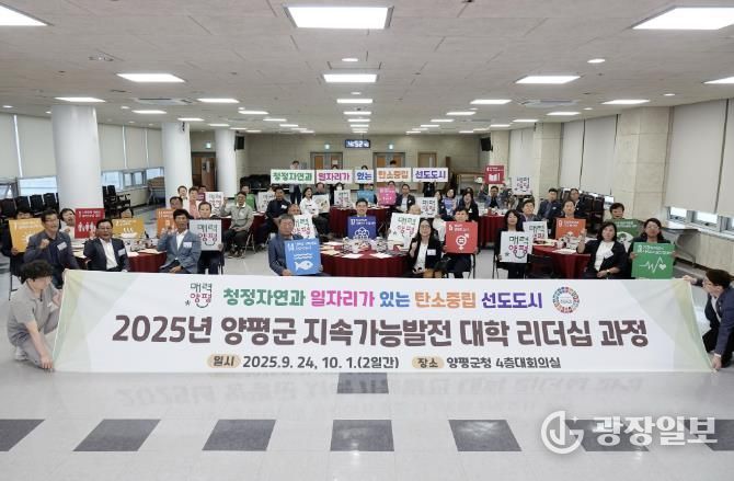 광장일보 주재영 기자 | 양평군은 지난 9월 24일과 10월 1일 양일간 군청 대회의실에서 ‘2025 양평군 지속가능발전대학 리더십 과정’을 성공적으로 마무리했다고 밝혔다.