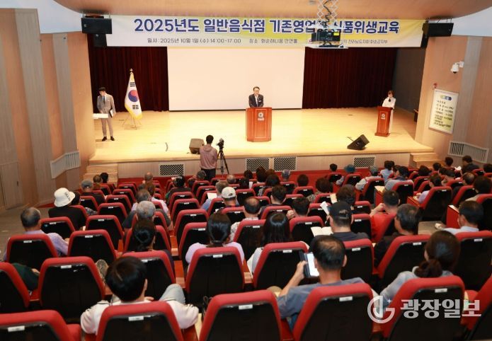 광장일보 주재영 기자 | 화순군과 (사)한국외식업중앙회 전라남도지회 화순군 지부(지부장 이향심)는 지난 10월 1일 하니움스포츠문화센터 만연홀에서 관내 일반음식점 영업주 200여 명을 대상으로 '2025년도 일반음식점 영업자 위생교육을 진행했다.