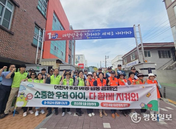 광장일보 주재영 기자 | 대구 수성구는 지난 2일 범어초등학교 인근에서 어린이 대상 범죄 예방과 지역사회 안전의식을 높이기 위해 민·관·경·학 합동 유괴 예방 집중 캠페인을 실시했다.