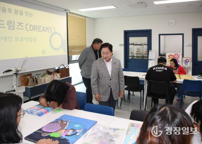 이날 주광덕 시장은 다산동에 위치한 드림즈 장애인보호작업장과 진건읍 송능리에 위치한 남양주 시니어클럽 공동작업장을 방문해 노인·장애인 근로자들을 격려하고 소통하는 시간을 가졌다.