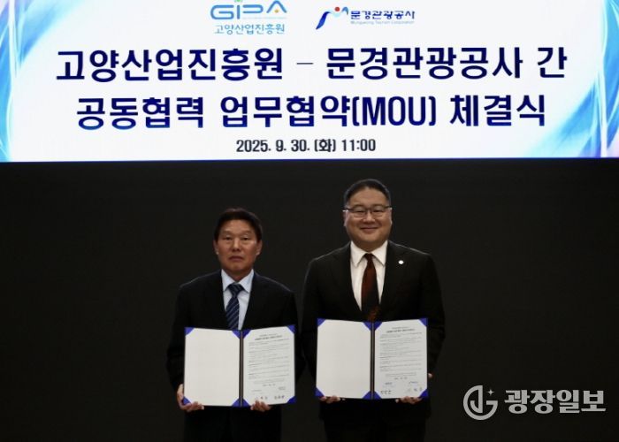 광장일보 주재영 기자 | 고양산업진흥원이 지난 30일, 고양아쿠아특수촬영스튜디오에서 문경관광공사와 공동협력 업무협약 MOU를 체결했다.