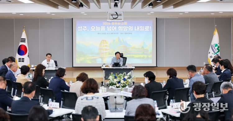 광장일보 주재영 기자 | 성주군은 10월 2일 군청 문화강좌실에서 팀장급 이상 간부 공무원이 참석한 가운데‘2026 업무보고회’를 개최하고, 민선8기 마지막 해의 군정 운영 방향과 주요 과제를 점검했다.