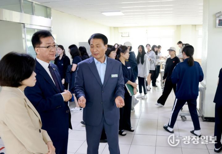 광장일보 이현나 기자 | 대전시의회 조원휘 의장은 이금선 교육위원장과 함께 2일 대전둔산여자고등학교를 방문해 학교․교육청 관계자로부터 학교급식 운영 상황을 보고받았다.