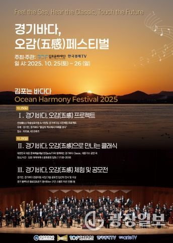 광장일보 이현나 기자 | (재)김포문화재단은 오는 10월 25일부터 26일까지 양일간 김포 아라마리나 문화광장에서 'Ocean Harmony Festival 2025, 경기바다 오감(五感) 페스티벌'을 개최한다고 밝혔다. 이번 행사는 한국경제TV 및 한경arteTV가 주관하고 경기관광공사가 후원한다.