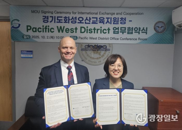 광장일보 나병석 기자 | 화성오산교육지원청은 10월 2일 미국방부교육청 대회의실에서 미국 Pacific West District와 국제교류협력 업무협약(MOU)을 맺고, 학생 맞춤형 글로벌 교육 프로그램을 본격적으로 추진한다.