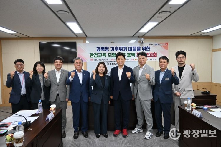 광장일보 주재영 기자 | 경북도의회 '경상북도 기후위기 대응 교육 연구회'(대표 박용선 의원)는 10월 2일 오전 10시20분, 도의회 회의실에서 ‘경북형 기후위기 대응을 위한 환경 교육 모형 연구용역’ 최종보고회를 개최했다.