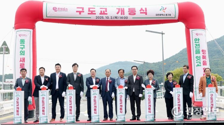 이날 개통식에는 박희조 동구청장, 오관영 동구의회의장, 이장우 대전시장을 비롯한 주요 내빈과 지역 기관·단체장, 주민 등 200여 명이 참석해 새롭게 단장한 구도교의 개통을 함께 축하했다.