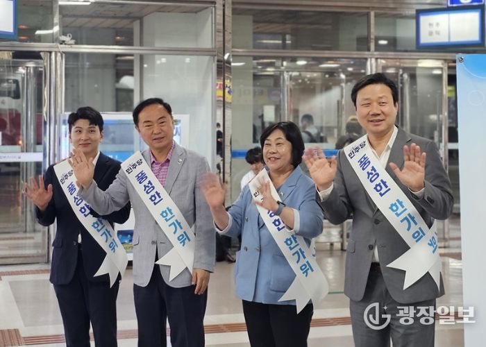 광장일보 주재영 기자 | 성남시의회 더불어민주당협의회는 2일, 성남시종합버스터미널(야탑)을 찾아 고향으로 향하는 귀성객들을 환송하며 따뜻한 인사를 나눴다.