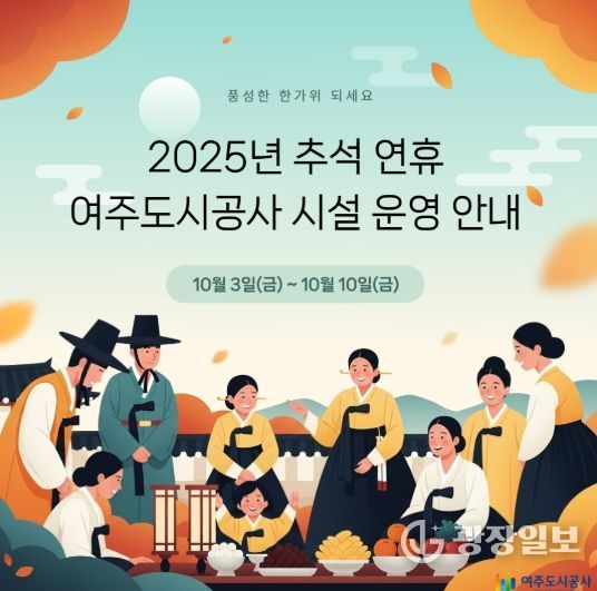 광장일보 주재영 기자 | 여주도시공사는 2025년 추석 명절을 맞아 고향을 찾는 귀성객과 시민들의 편의를 위해 주요 시설 운영시간 조정, 무료개방 등 특별 서비스를 제공한다고 2일 밝혔다.