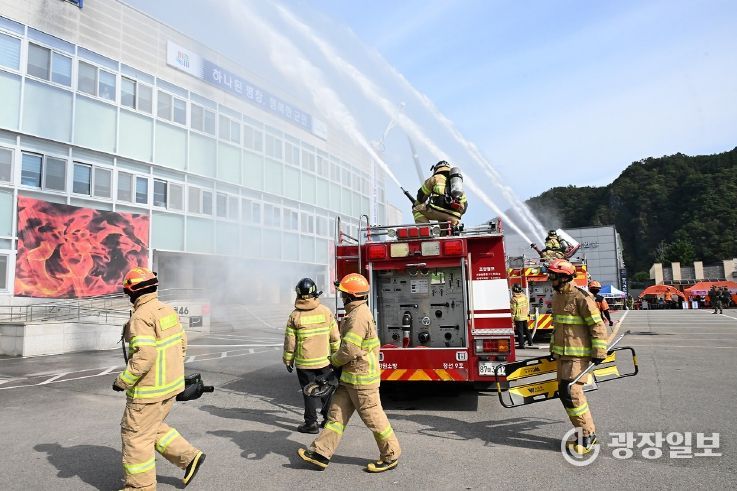 군청 재난안전상황실에서는 재난안전대책본부장인 심재국 평창군수가 주재해 실무부서와 유관기관별 협력·조치 방안에 대해 논의했으며, 현장훈련에서는 자위소방활동과 재난안전통신망(PS-LTE)을 통한 상황 보고·전파, 긴급구조통제단 가동, 통합지원본부 운영 등 재난대응 단계별 사고 수습 체계를 점검하는 데 중점을 뒀다.