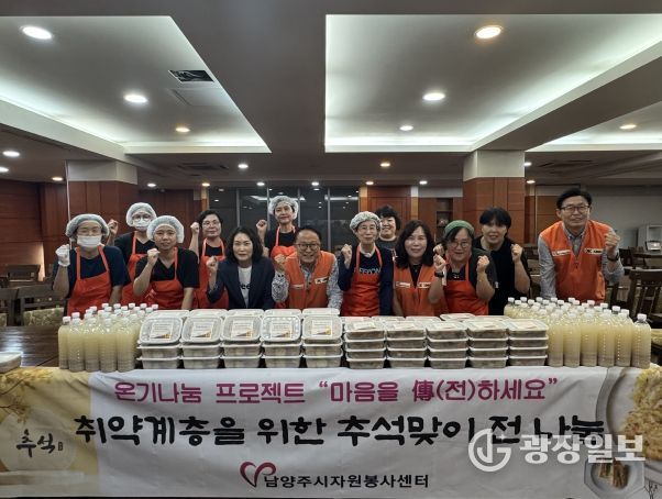 광장일보 주재영 기자 | 남양주시자원봉사센터는 추석맞이 집중 주간을 맞이하여 9월 25일부터 오는 10월 3일까지 약 1,300명의 관내 취약계층을 대상으로 ‘추석맞이 전 나눔 활동’을 펼쳤다.
