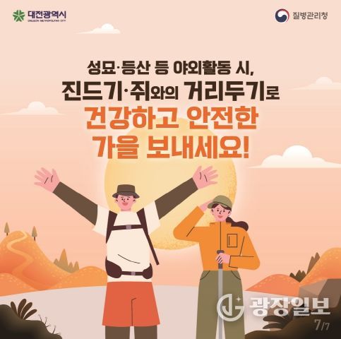 광장일보 이현나 기자 | 대전시는 성묘와 등산, 농작업 등 야외활동이 늘어나는 가을철을 맞아 시민들에게 진드기·설치류 매개 감염병 예방수칙 준수를 당부했다.