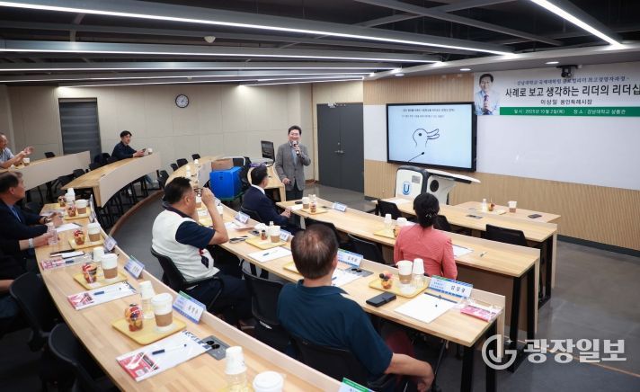 광장일보 주재영 기자 | 이상일 용인특례시장은 2일 저녁 강남대학교에서 ‘강남대학교 국제대학원 글로벌리더 최고경영자과정’ 수강생을 대상으로 특강을 했다.