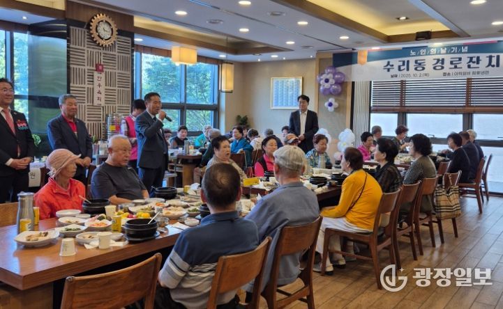 광장일보 주재영 기자 | 군포시 수리동 주민자치회(회장 고진해)는 제29회 노인의 날을 맞아 지난 10월 2일 수리동 어르신들을 대상으로 경로잔치를 개최했다. 이번 행사는 하은호 군포시장, 이학영 국회부의장 등 여러 내빈과 수리동 직능단체장들이 어르신 100여 명과 뜻깊은 자리를 함께했다.