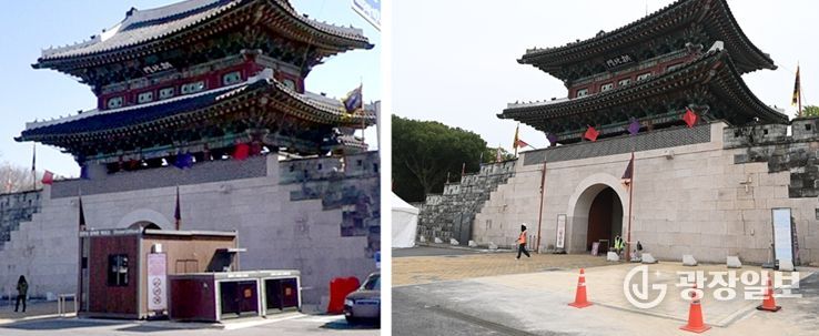 광장일보 주재영 기자 | 진주시는 1일 진주성 공북문 앞을 가로막아 시각적으로 조화롭지 못했던 매표소를 기존 관광안내소 옆으로 이전 설치하여 진주성 성벽과 공북문 경관을 회복했다고 밝혔다.