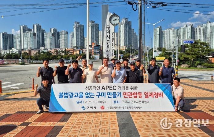 광장일보 주재영 기자 | 구미시는 민족 대명절 추석과 오는 10월 말 경주에서 열리는 2025 APEC 정상회의를 앞두고 (사)경북옥외광고협회 구미시지부와 함께 10월 한 달간 불법광고물 집중정비 기간을 운영한다.