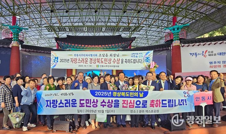 광장일보 주재영 기자 | 안동시는 10월 1일 경주엑스포공원 백결공연장에서 열린 ‘2025년 경상북도민의 날’ 기념식에서, 안동시민 3명이 ‘자랑스러운 도민상’을 수상했다고 밝혔다.