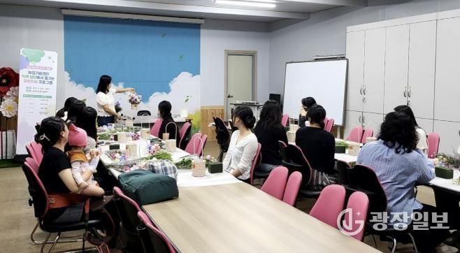아로마테라피를 활용한 손세정제 만들기, 감성 꽃바구니 제작, 수납정리 실습, 치유쉼터에서의 기타 공연 등 다채로운 프로그램이 운영돼 참여자들의 높은 만족을 이끌어냈다.