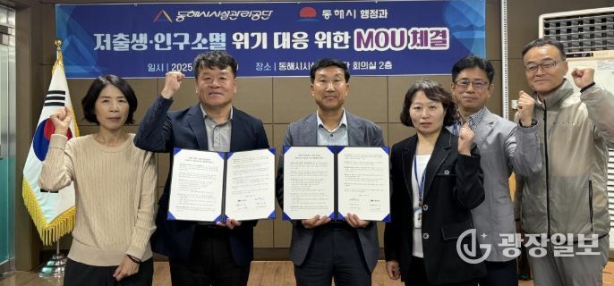 광장일보 이현나 기자 | 동해시시설관리공단과 동해시 행정과은 10월 1일, 인구소멸 관심지역인 ‘동해시’의 정주 생활 인구 확대 및 출산 장려를 위한 공동 협력체계 구축을 내용으로 하는 업무협약을 체결했다.
