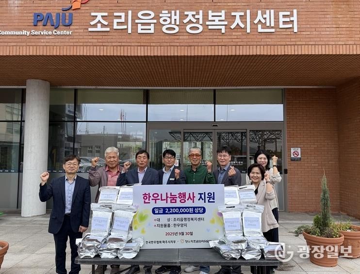광장일보 주재영 기자 | 파주시 조리읍은 지난 9월 30일 전국한우협회 파주시지부로부터 추석 명절을 맞아 220만 원 상당의 한우 양지 43kg을 기탁 받았다고 전했다.