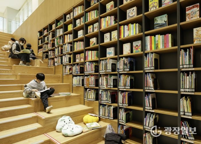 2층은 어린이·유아자료실을 중심으로 구성돼 아동 도서가 구비돼 있다. 또한, ▲5면 3D와 터치센서를 활용한 체험형 동화구연실 ▲미디어 아트존 ▲인터렉티브 월 ▲핑거스토리(AR북) 등 아이들의 호기심을 자극하는 감각적이고 체험 중심의 콘텐츠가 마련돼 있다.