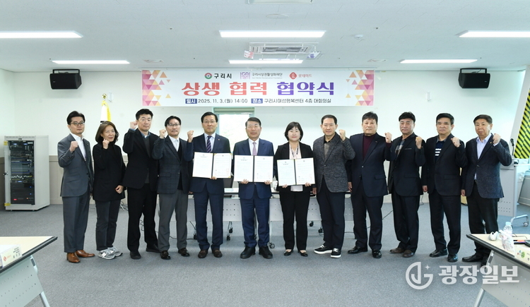 구리시=주재영 기자 |구리시(시장 백경현)는 11월 3일 구리시 여성행복센터 대회의실에서 재단법인 구리시 상권 활성화재단, 롯데쇼핑㈜ 롯데마트사업본부와 함께 ‘구리시·구리시 상권 활성화재단·롯데마트 상생협력 협약’을 체결했다.
