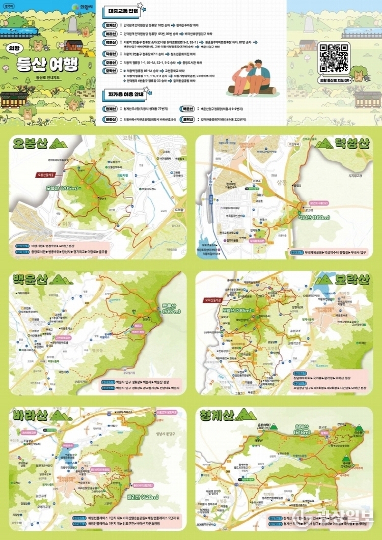 의왕시= 주재영 기자 |의왕시(시장 김성제)는 노후된 등산 지도를 대체하고 최신 등산로 정보를 반영한 QR코드 기반 스마트 산행 안내 지도’를 제작했다고 밝혔다.