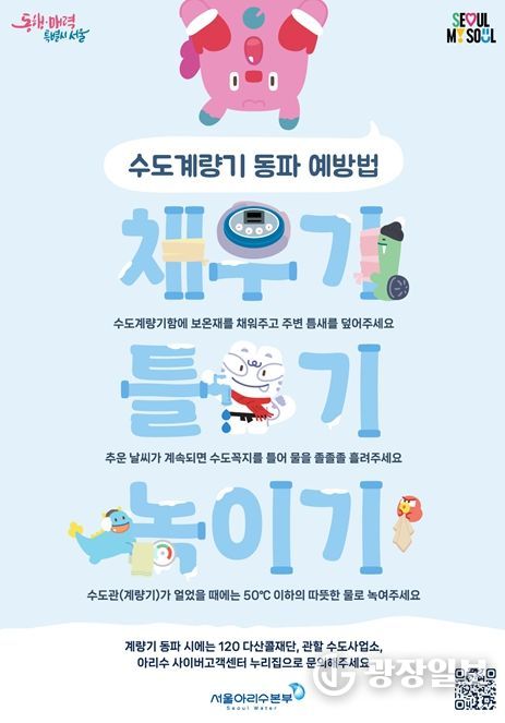 이회승 서울아리수본부장은 “지난해 동파 취약지역을 중심으로 사전 예방 활동을 펼치고, 시민들을 대상으로 동파예방 수칙을 적극 홍보한 결과 동파 건수가 전년 대비 33% 감소했다”라며 “올해는 한파 예보 단계별 안내와 상황실 운영, 취약지역 집중 관리, 생활 속 예방수칙 홍보를 강화해 수도계량기 동파를 효과적으로 예방하겠다”고 말했다.