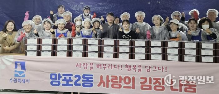 광장일보 나학천 기자 | 수원시 영통구 망포2동은 지난 13일 망포2동 행정복지센터에서 2025 이웃사랑 김장 나눔 행사를 진행했다. 망포2동 새마을문고가 주관하고 망포2동 단체협의회가 후원하여 진행한 김장 나눔 행사에서 10여 명의 인원이 모여 김장 김치를 담갔다.