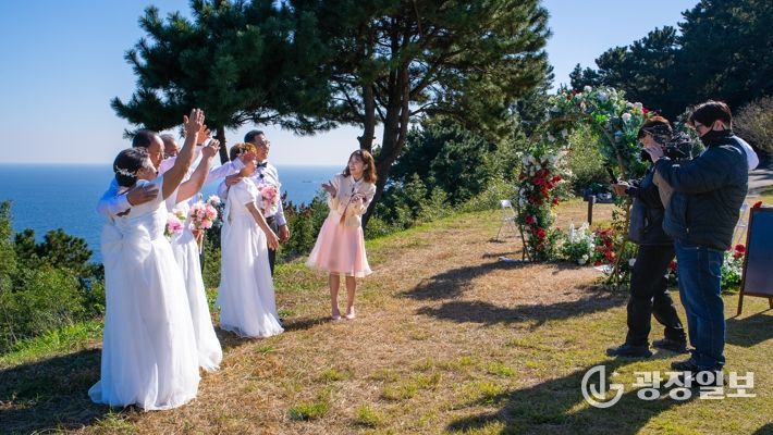 광장일보 주재영 기자 | 거제시는 지난 15일, 동백 원시림의 아름다움으로 유명한 지심도에서 ‘2025년 자연과 함께하는 웨딩·휴양섬’의 세 번째 프로그램으로 황혼 부부 3쌍을 초청해 감동적인 리마인드 웨딩과 기념 촬영 행사를 성공적으로 개최했다.