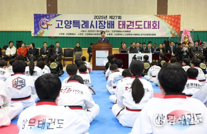 이날 유치부, 초·중·고 선수 1,000여 명이 품새, 겨루기 등에서 실력을 겨뤘다.