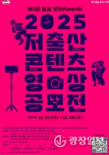 광장일보 주재영 기자 | 대구 달서구는'출산BooM 달서'프로젝트 일환으로 MZ 청년세대의 저출산 긍정 인식 확산과 참여형 홍보를 위해‘제1회'출산BooM 달서'저출산 콘텐츠 영상 공모전’을 개최한다.
