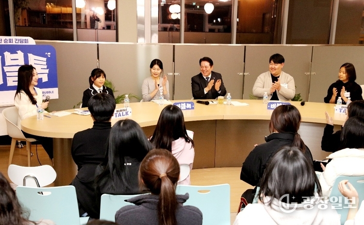 안양시= 주재영 기자 | 안양시는 18일 관양청소년문화의집에서 ‘청소년의 꿈이 버블버블, 버블톡(Bubble Talk)’을 주제로 민선 8기 3주년 기념 공공·협력기관 순회 간담회를 개최했다고 19일 밝혔다. 이번 간담회는 청소년·학부모·교사·청소년지도사 등 100여 명이 참여한 가운데 토크콘서트 형식으로 열려, 청소년 정책 비전과 향후 발전 방향을 함께 논의하는 소통의 장이 됐다.