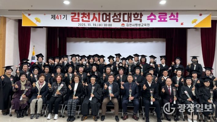 광장일보 주재영 기자 | 김천시는 지난 19일 평생교육원 3층 강당에서 가을의 시작과 함께한 '제41기 김천시여성대학'수료식을 성황리에 개최했다.