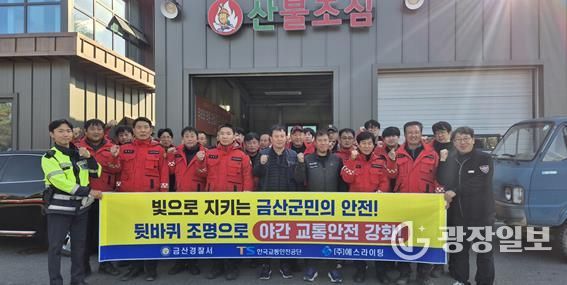 광장일보 주재영 기자 | 금산경찰서는 11월 19일, 충남경찰청과 ㈜에스라이팅과 협력해 금산군 내 농기계·화물차·산불진화차량 등 총 30대를 대상으로 ‘뒷바퀴 조명등’ 부착 지원 및 안전운전 캠페인을 실시했다고 밝혔다.