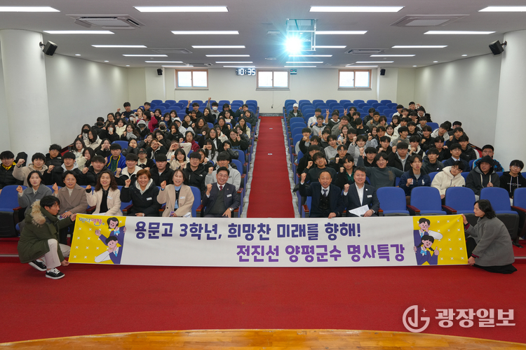 양평군=주재영 기자 | 전진선 양평군수가 대학수학능력시험을 마치고 졸업을 앞둔 고등학교 3학년 학생들에게 진로 탐색과 사회 진출의 방향성을 제시했다. 양평군은 19일 전 군수가 용문고등학교 소강당에서 3학년 학생 140여 명을 대상으로 ‘큰 꿈을 향한 준비가 미래를 여는 힘’을 주제로 명사 특강을 진행했다고 밝혔다.