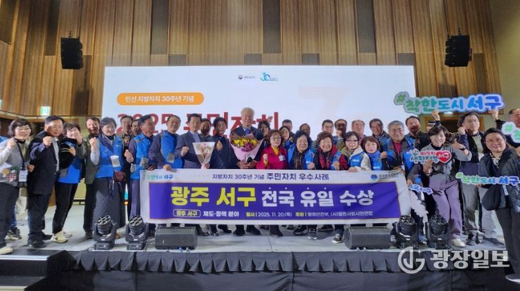 광장일보 주재영 기자 | 광주광역시 서구가 마을 중심의 자치행정을 실현한 성과를 인정받아 행정안전부가 주관한 지방자치 30주년 기념 공모전에서 전국 기초자치단체 중 유일하게 2관왕에 올랐다. 서구는 20일 울산전시컨벤션센터에서 열린 주민자치 우수사례 공모전에서 풍암동 BI사업(주민자치 분야)과 거점-연계동 협력 시스템(제도정책 분야) 두 개 분야에서 모두 행정안전부장관상을 수상하며 총 특별교부세 1억5천만원을 확보했다.