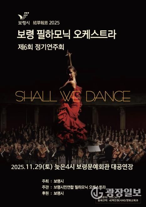 광장일보 주재영 기자 | 보령시민연합 필하모닉 오케스트라가 오는 11월 29일 오후 4시 보령문화예술회관 대공연장에서 제6회 정기연주회 ‘Shall We Dance’를 개최해 시민들에게 특별한 음악적 감동을 선사한다.