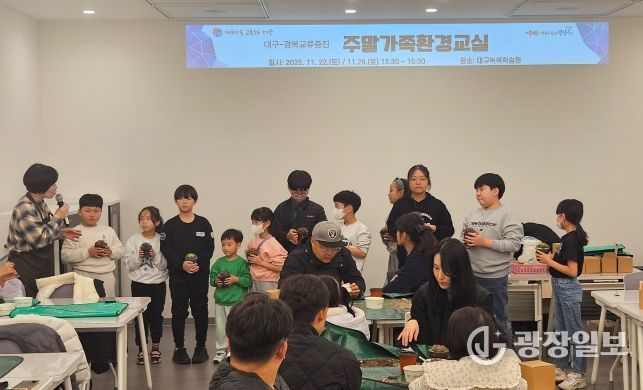 광장일보 주재영 기자 | 대구시교육청은 11월 22일과 29일 양일간 대구녹색학습원에서 경북 지역 40가족을 대상으로 ‘가족주말환경교실’을 운영한다. 이번 프로그램은 2025년 대구-경북교육청 교류 증진 사업의 하나로, 학생 60명과 학부모 80명이 참여해 환경 체험 활동을 진행한다.