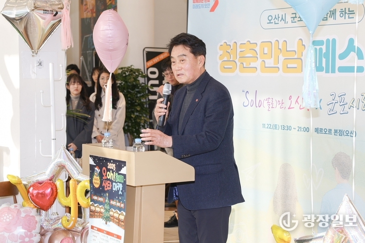 군포시= 주재영 기자 | 군포시(시장 하은호)와 오산시(시장 이권재)는 공동으로 추진한 ‘청춘만남 페스티벌–군포시럽×SOLO만 오산’ 2회차 행사를 지난 22일 오산시 메르오르 본점에서 성공적으로 개최했다고 밝혔다.