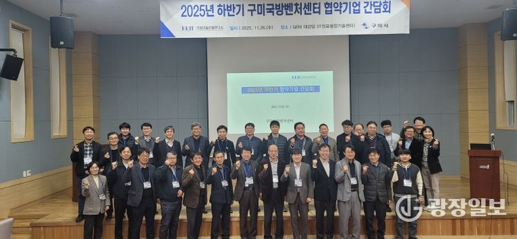 광장일보 주재영 기자 | 구미시는 11월 26일 금오테크노밸리 IT의료융합기술센터 대강당에서 '2025년 구미국방벤처센터 협약기업 간담회'를 열고 지역 방산기업의 성장 전략을 논의했다. 간담회에는 정성현 구미시 부시장과 구미국방벤처센터 협약기업 31개사를 포함해 50여 명이 참석했다.
