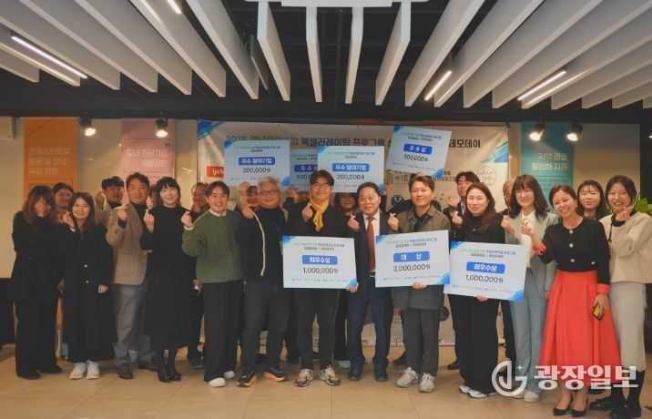 대상에는 200만 원, 최우수 2개 사에는 각 100만 원, 우수 2개 사에는 각 50만 원이 지급됐다. 대상의 영예는 지역 실감콘텐츠 전시장 구축을 통해 경남의 문화적 공백을 수익 창출 기회로 전환하는 ㈜브리스트에게 돌아갔다.