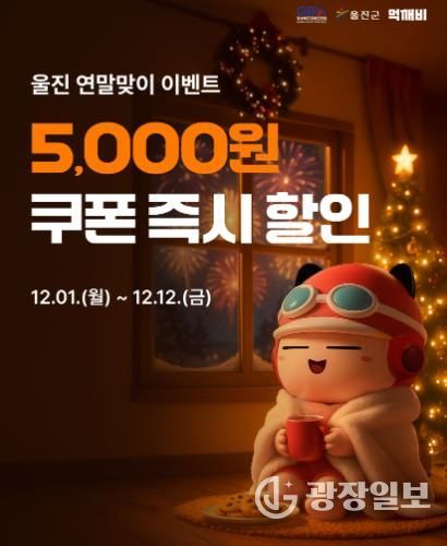 광장일보 주재영 기자 | 울진군은 12월 1일부터 소상공인들의 배달 수수료 부담 완화와 지역경제 활성화를 도모하기 위해 공공배달앱‘먹깨비’할인 이벤트’를 진행한다.