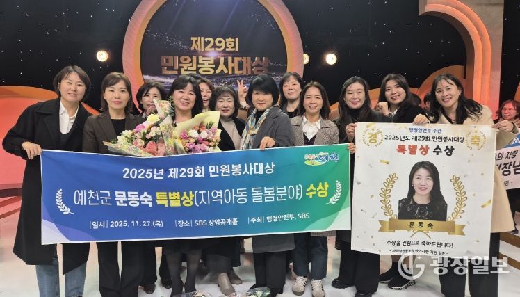 광장일보 주재영 기자 | 예천군 아이키움 마을돌봄터 문동숙 센터장이 행정안전부와 SBS가 공동으로 주최하는 ‘2025년 제29회 민원봉사대상’에서 돌봄분야 특별상을 수상하는 영예를 안았다.
