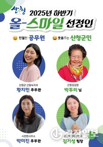 광장일보 주재영 기자 | 산청군은 ‘2025년 하반기 올-스마일 민원 공무원과 군민’을 선발했다고 8일 밝혔다.