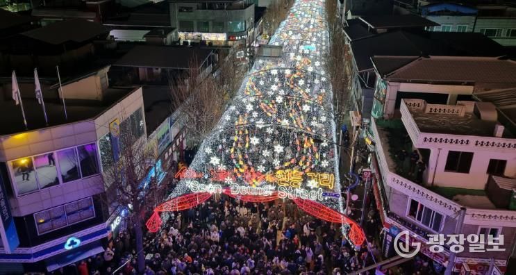 선등거리에는 지난 1년 간 화천지역 어르신들이 손수 제작한 형형색색의 산천어등과 LED 조명 수만여 개가 설치됐다.