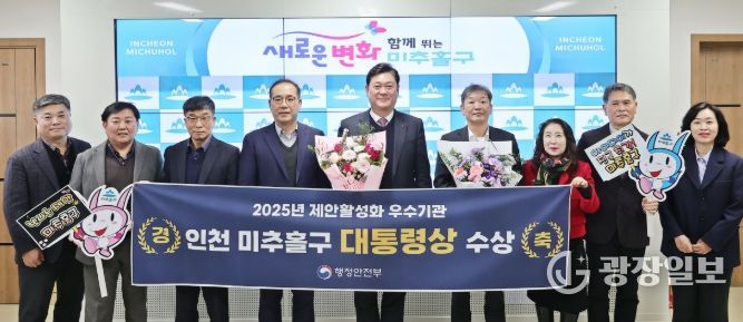 광장일보 주재영 기자 | 인천 미추홀구는 9일 정부세종청사에서 열린 ‘2025년 제안 활성화 우수기관 시상식’에서 대통령상을 받았다.