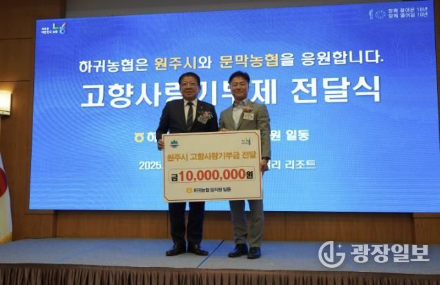이번 기부는 원주 문막농협과 제주 하귀농협이 2015년 맺은 자매결연 10주년을 기념하기 위해 이뤄졌으며, 지역 간 상생협력의 모범 사례가 될 것으로 기대된다.