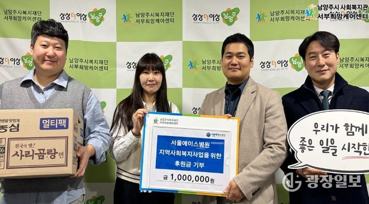 광장일보 주재영 기자 | 남양주시는 10일 다산동 소재 서울에이스병원이 지역사회 복지 증진을 위해 서부희망케어센터에 후원금 100만 원을 전달했다고 밝혔다.