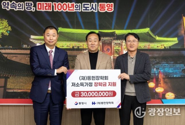 광장일보 주재영 기자 | 재단법인 동헌장학회는 지난 9일 통영시에 저소득가정 학생의 학업 지원을 위한 장학금 3,000만원을 기탁하며 지역 인재 육성에 따뜻한 뜻을 전했다.
